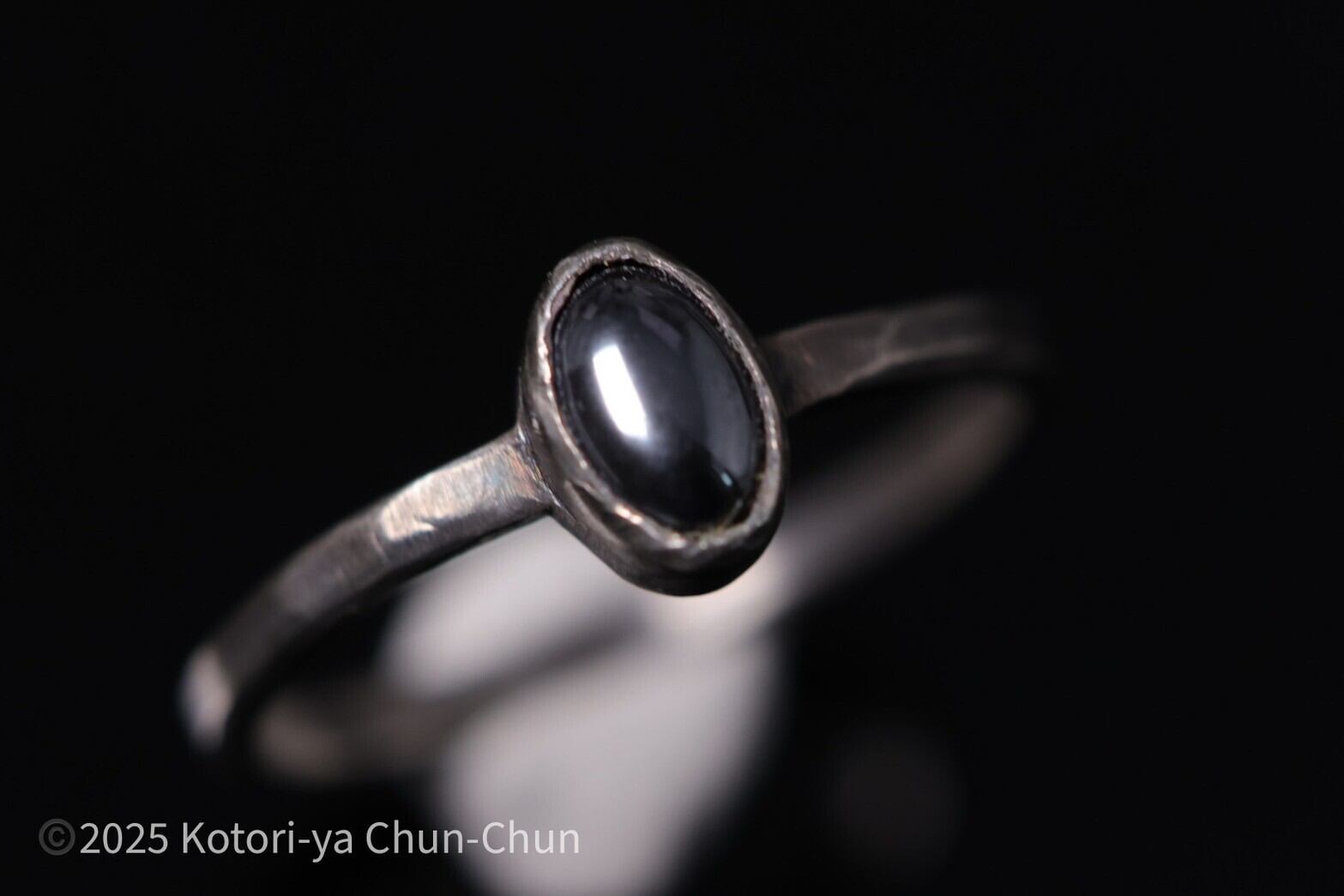 【古の鏡】顔が映るくらい艶めく黒 ヘマタイト・シルバーリング【鏡鉄】