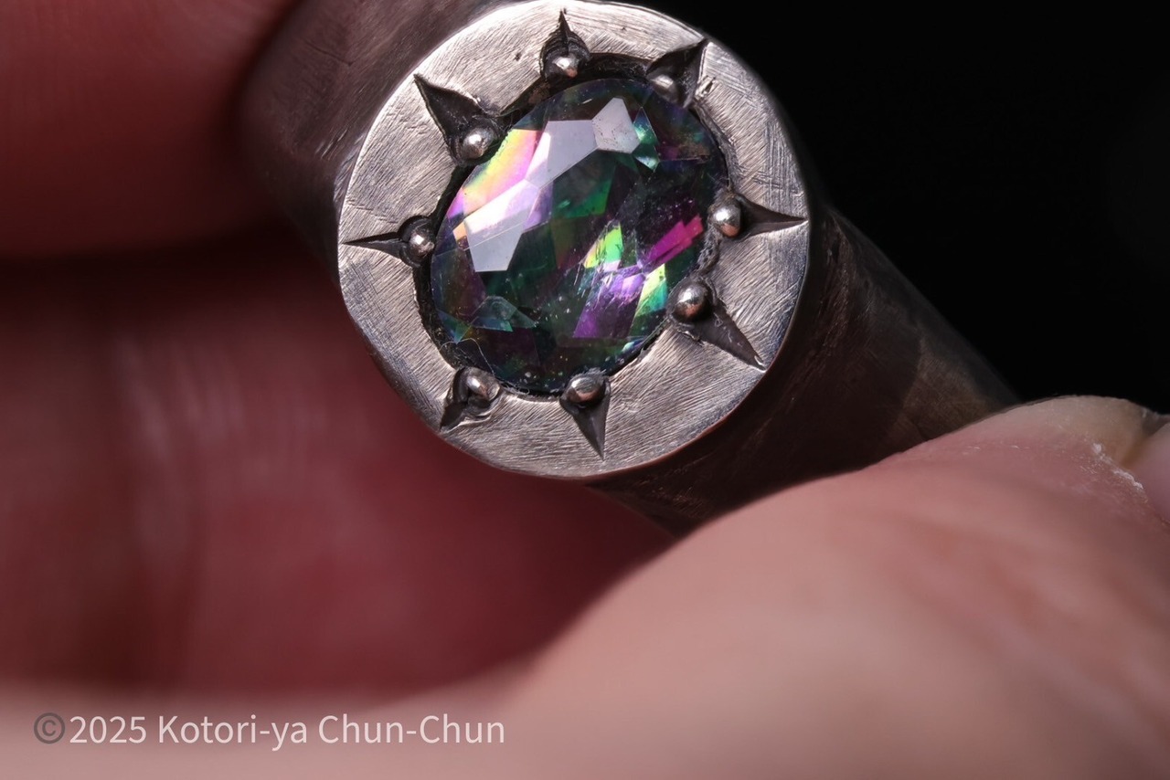 燻加工でどこかアンティークな香りがする中にこの妖艶な玉虫色…